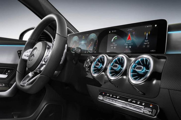 The new Mercedes-Benz A-Class cabin, featuring the dual screen setup