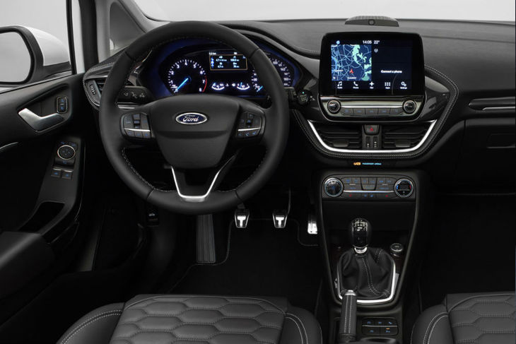 Apart from its (perhaps regrettably) evolutionary exterior design, the Fiesta’s interior has been thoroughly redesigned and incorporates higher quality materials and new technology. A major improvement is the inclusion of an 8-inch floating touchscreen display utilising Ford’s latest SYNC3 infotainment system, resulting in a 50% reduction of buttons compared with the current car's fascia. The system will offer Bluetooth capability, audio streaming and voice activated audio, navigation and smartphone functionality while also offering Apple CarPlay, Android Auto and SYNC AppLink. Passenger comfort has improved too; Ford claims an increase of 16 mm for rear passenger legroom, while new seating offers greater levels comfort.