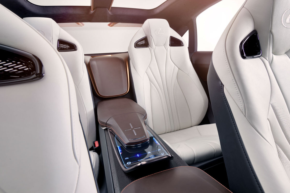 Inside the minimalist cabin, there is what Lexus terms a “four-dimensional navigation system”, which builds on traditional systems by adding the element of time to the equation. It is intended to act as a concierge of sorts for the occupants by anticipating their needs based on progress, traffic and road conditions along the programmed trip, suggesting fuel stops, rest breaks and restaurants, even offering to make hotel reservations. Navigation and route information are displayed on the in-dash monitor, the rear seat entertainment screens, or wirelessly connected to passengers' tablets and smartphones.