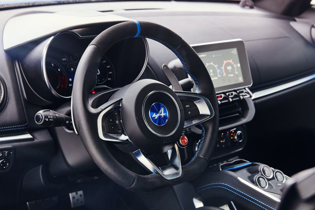 Well. Lower in perceived quality of materials, if we’re being honest. There are more brittle plastics, inevitably, because if you want to make a sub-1 100 kg coupé then them’s the breaks. There’s a reasonable-sized touchscreen, and maybe buyers will insist the A110 has its own infotainment system, but frankly, I’d prefer a mirror match with the smartphone all buyers will surely have anyway, and which would operate more effectively and save a few quid and kilos.