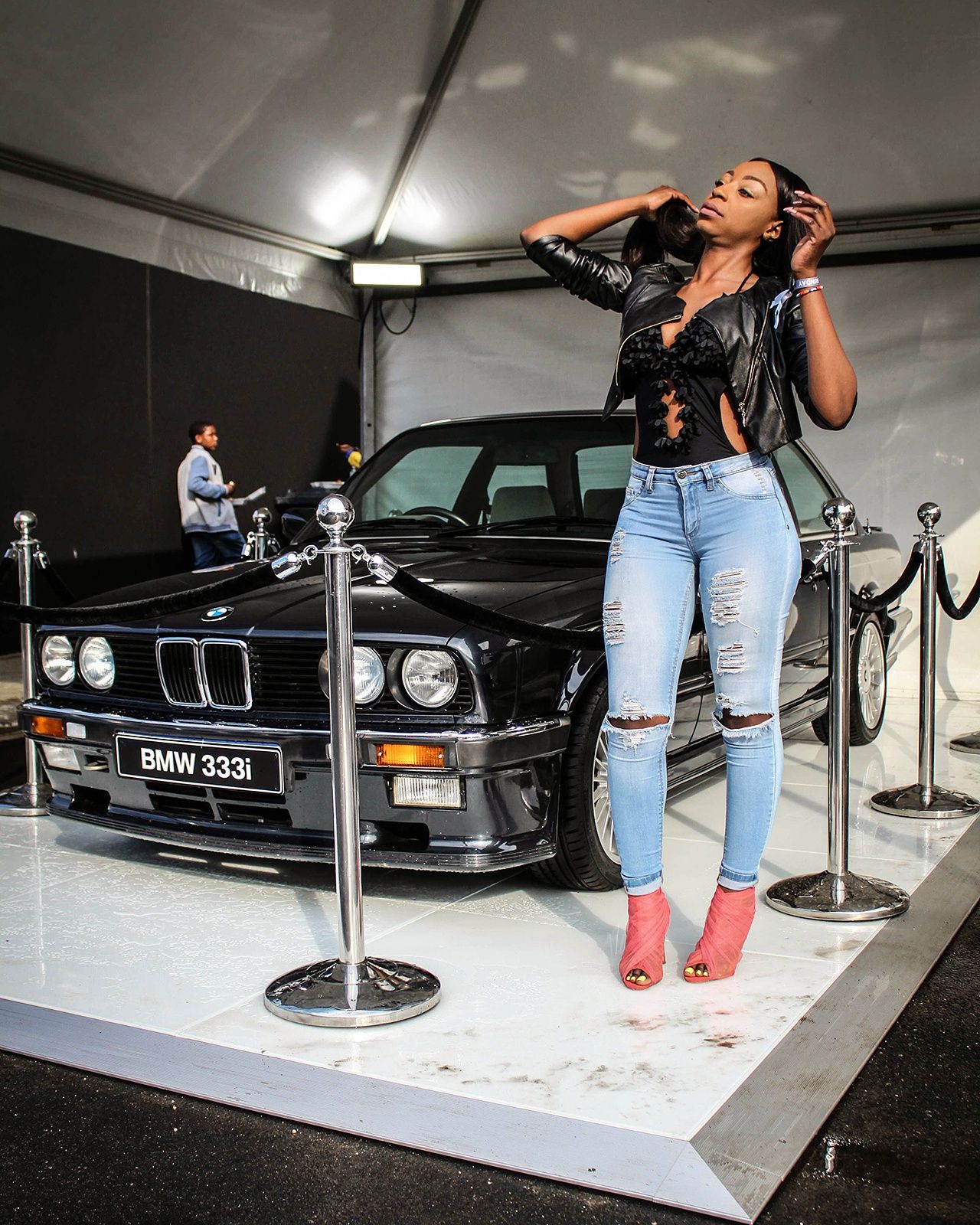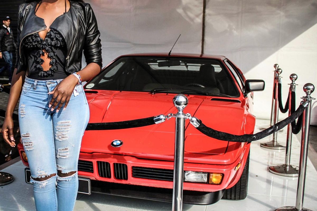 Khutso with one of her all-time fantasy cars, BMW's iconic 333i.