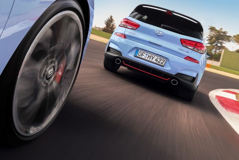 A sporty diffuser and twin tailpipes communicate intent and the performance i30 N will power from 0 to 100 kph in 6.1 seconds.