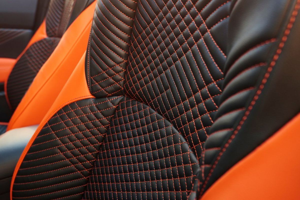 Burnt orange and black feature throughout the interior, continuing the theme from the exterior.