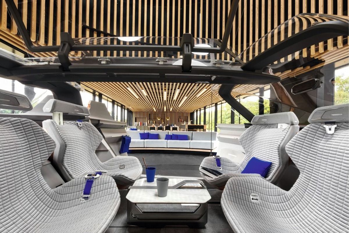 The thinking is that the vehicle can be driven into the house to become an additional, modular room in the form of a useful, mobile and connected space, parking inside or outside of the physical structure.