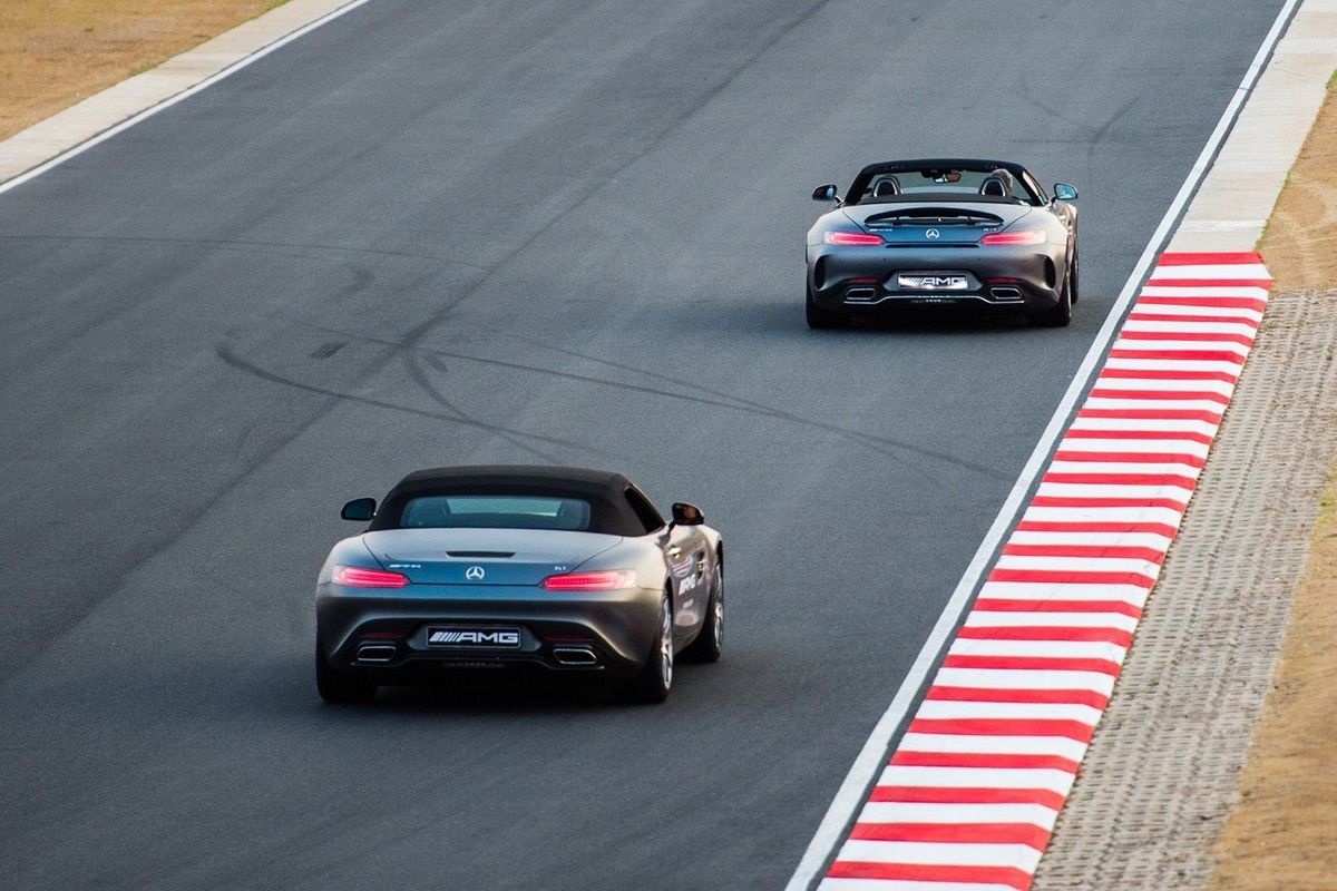 The AMG GT and GT S meet their snarly new siblings, the GT R and GT C at Kyalami Race Circuit.
