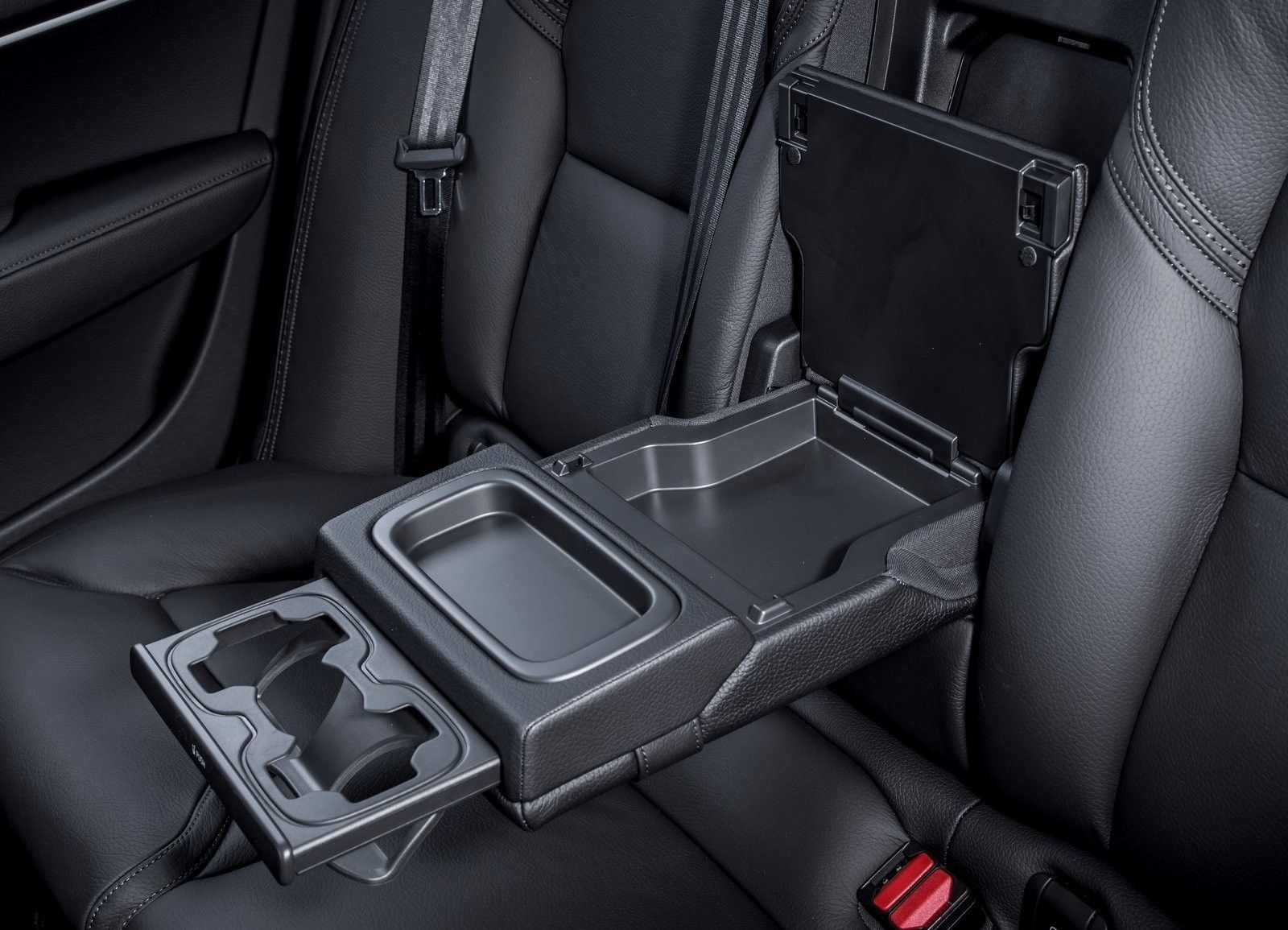 A large rear fold-out armrest with sliding drinks holders and extra storage is provided at the rear.