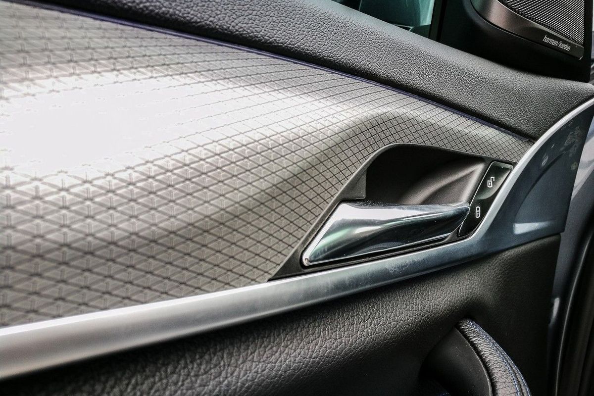 Upon closer inspection, you’re likely to notice how the ornate LED adaptive headlamp clusters merge gracefully with the large double kidney grille. There are characteristic swage lines that run just under the door handles for the length of the sedan’s flanks, a bevelled edge that traces the glasshouse (and Hoffmeister kink), as well as L-shaped LED taillights. Despite being slightly longer and wider than before, the G30-generation looks tauter and more compact, which is helped by the Bluestone Metallic exterior finish.