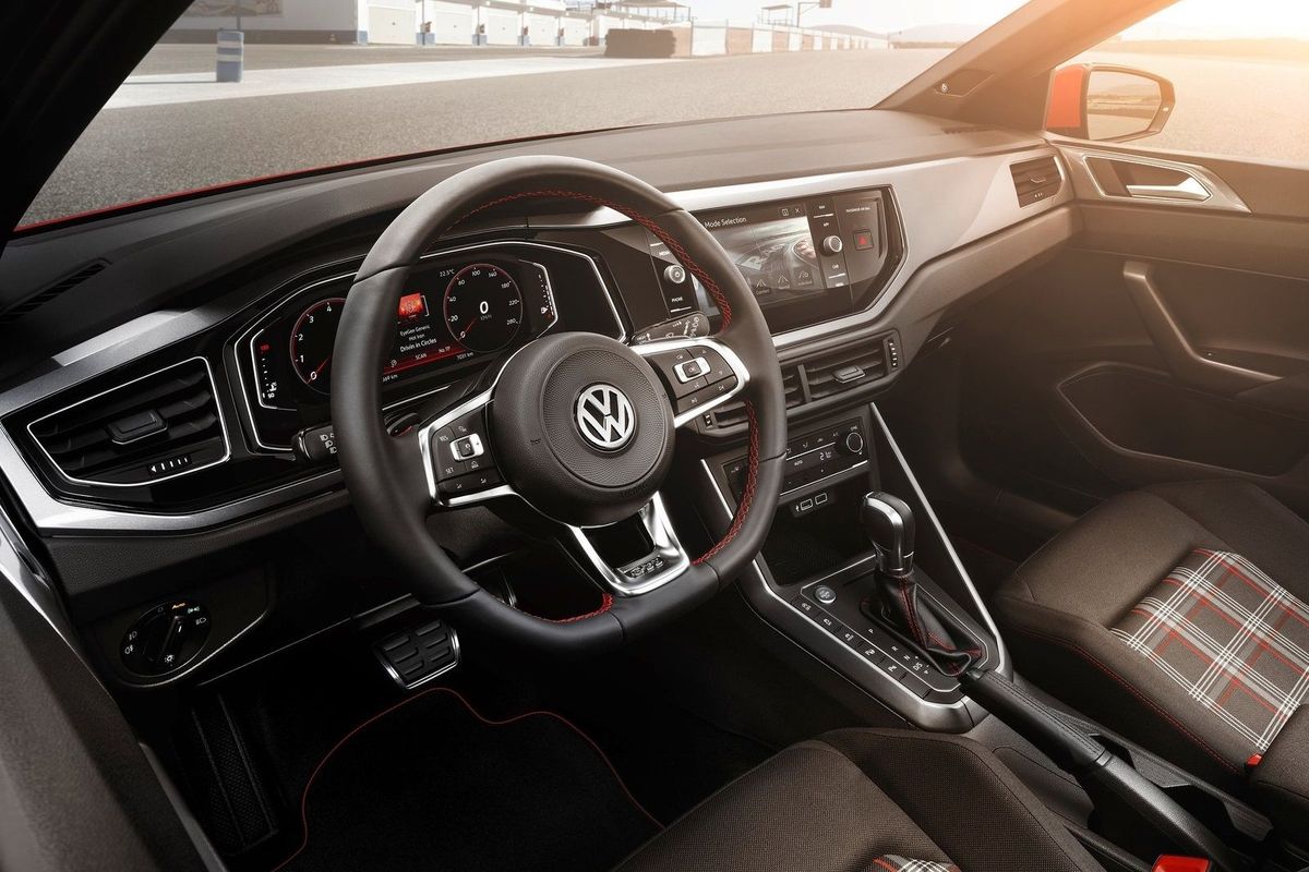 The Volkswagen Polo GTI comes standard with 17-inch alloy wheels, with the option of 18-inch. The cabin boasts typical GTI features such as sports seats with a tartan pattern, a multifunction leather-trimmed sport steering wheel with red stitching, roof lining and roof pillars in black and a GTI gear shift grip.