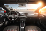 Visually, you'll be able to differentiate between this Polo GTI and lesser Polos as it features a specially-designed bumper with spoiler lip and standard fog lights. Trademark GTI touches such as a red stripe on the radiator grille, honeycomb air vent screens and a GTI badge. Optional LED headlights with a red winglet are available, while at the rear, the Volkswagen Polo GTI has a large roof spoiler in high-gloss black, a diffuser in the bumper, GTI-specific dual exhausts, LED tail lights and a GTI badge. Also, the brake callipers are painted red.