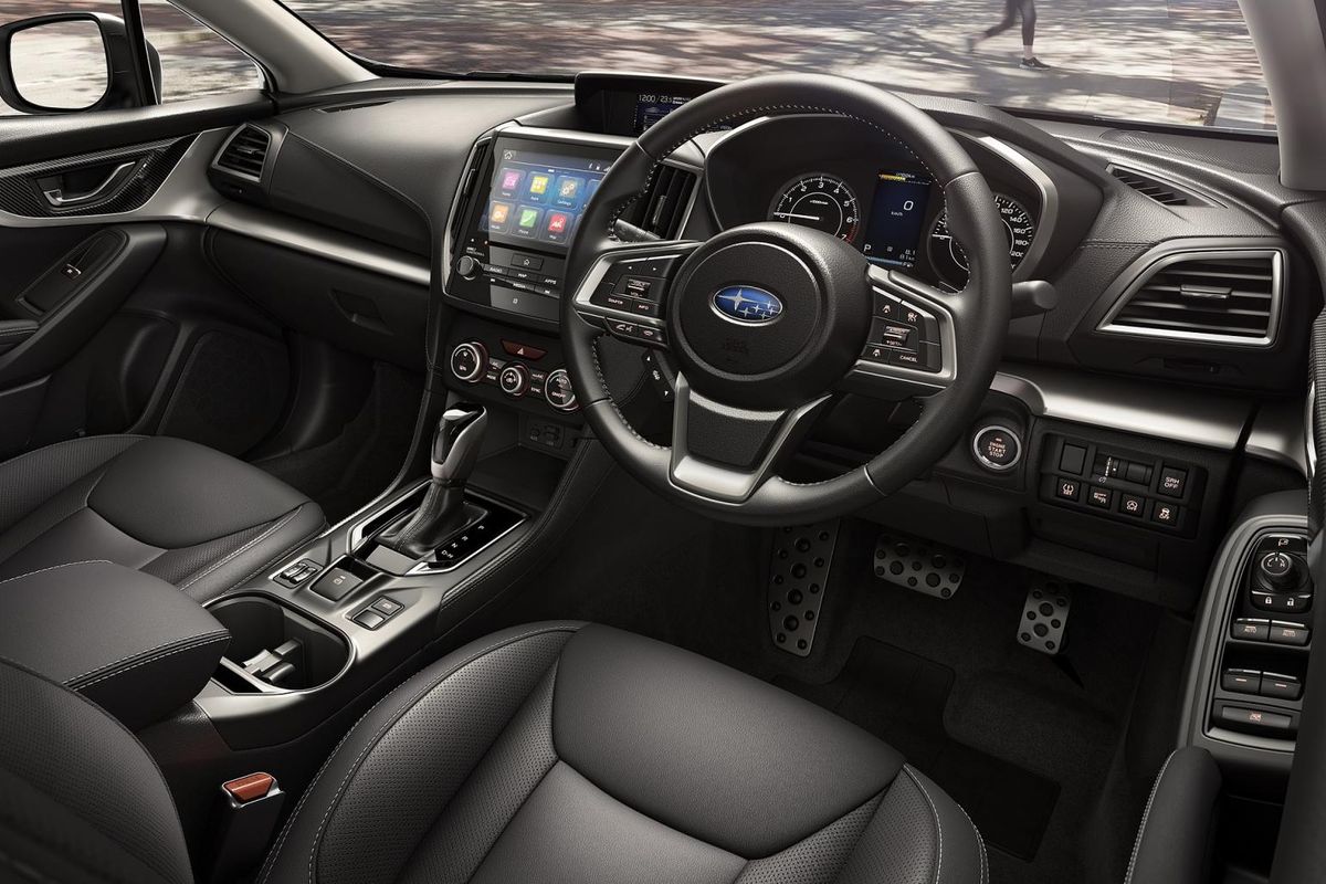 The cabin of the new Subaru Impreza. Note the all-new touchscreen featuring Apple Carplay and Android Auto.
