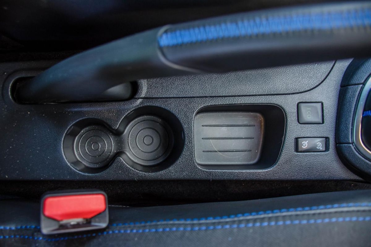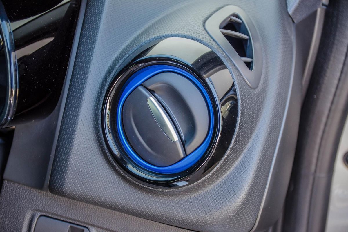 The interior is reasonably well-made and contrasting blue stitching and air vent surrounds add to the cabin's visual appeal.