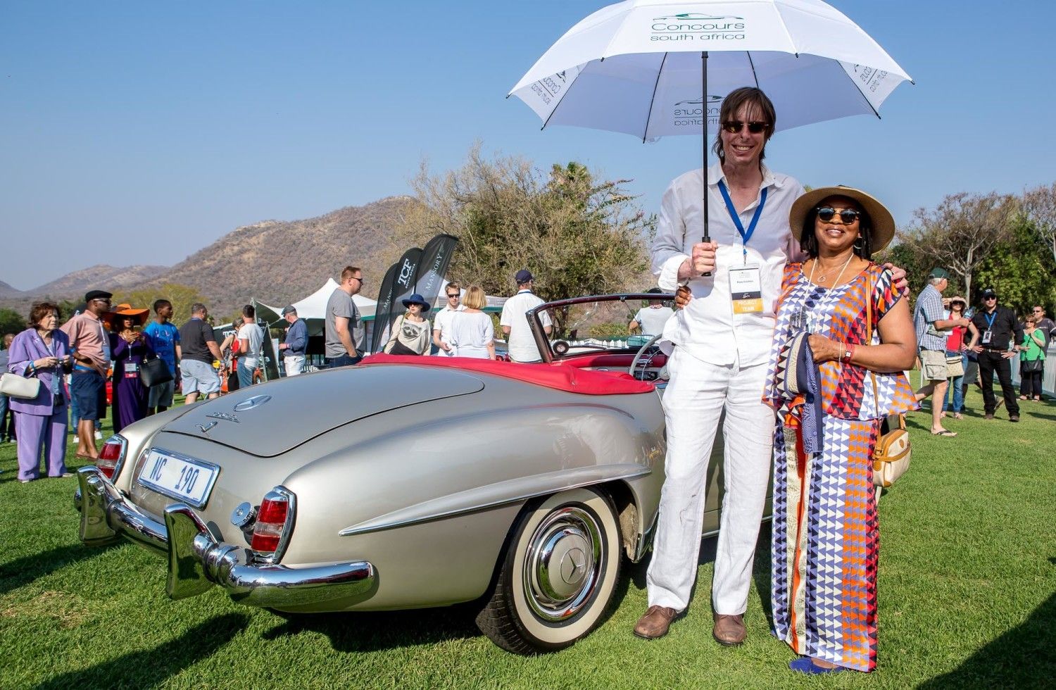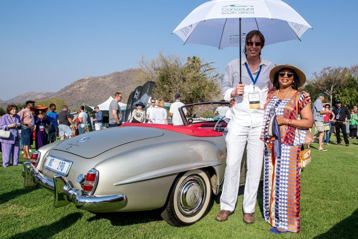 Manana Nhlanhla, with Concours South Africa organiser Ross Crichton and her 2016 Show & Shine-winning Mercedes-Benz 190 SL.