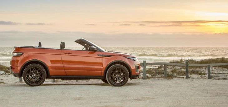 An Evoque Convertible in its natural habitat: at the beach and watching the sunset in style.