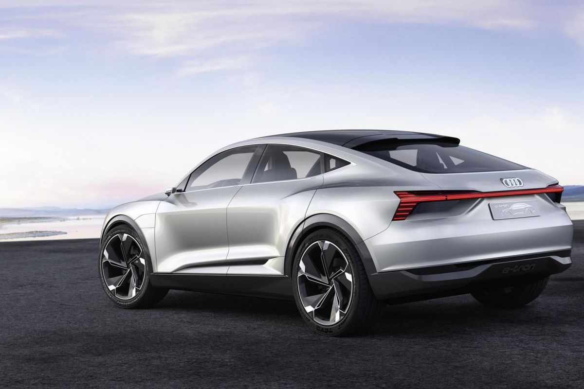 Audi’s E-Tron Sportback sits on 23-inch wheels and its length is 4.9-metres. It’s about the same size as an Audi A7, in other words.