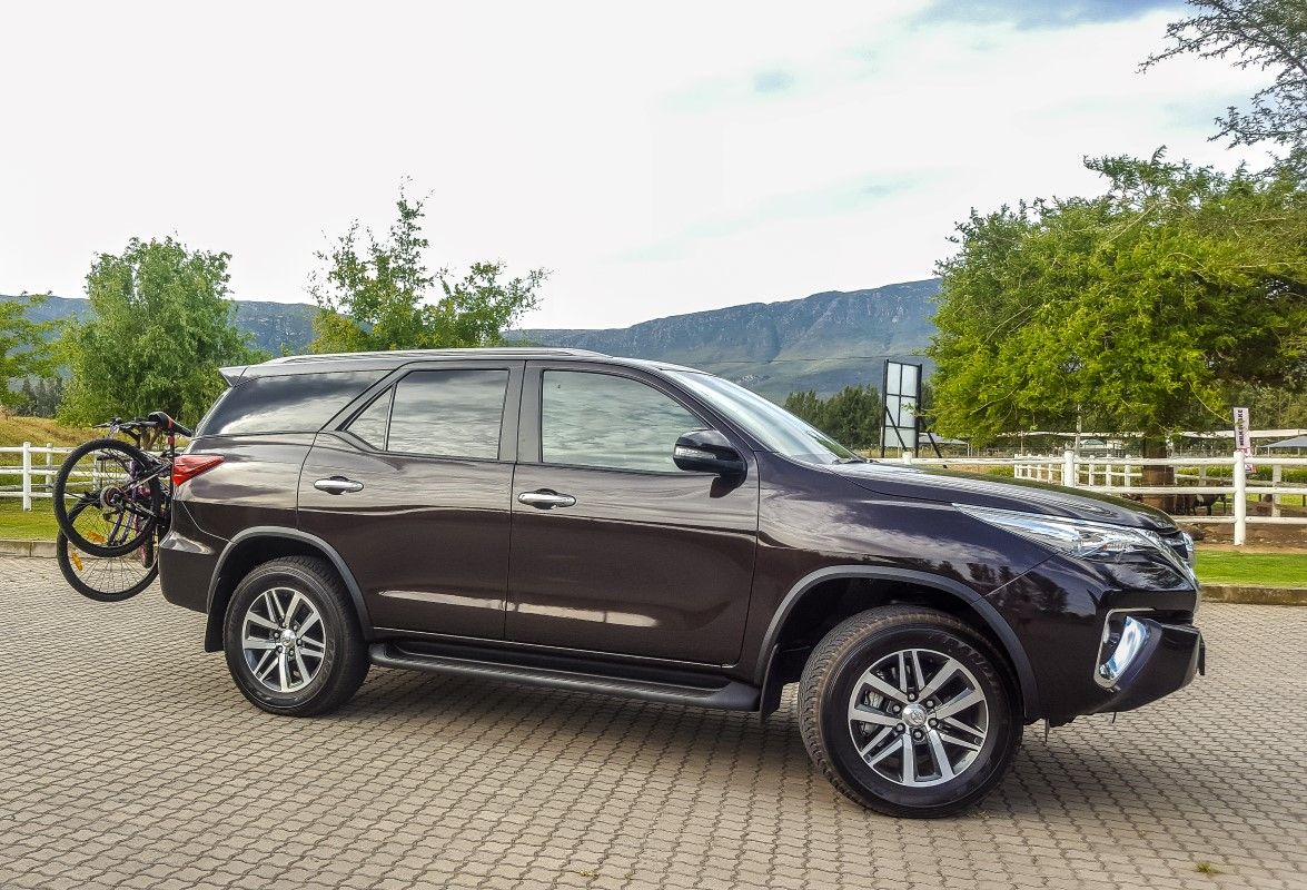 Fortuner in typical holiday mode – bicycle rack attached. 18-inch wheels now standard.