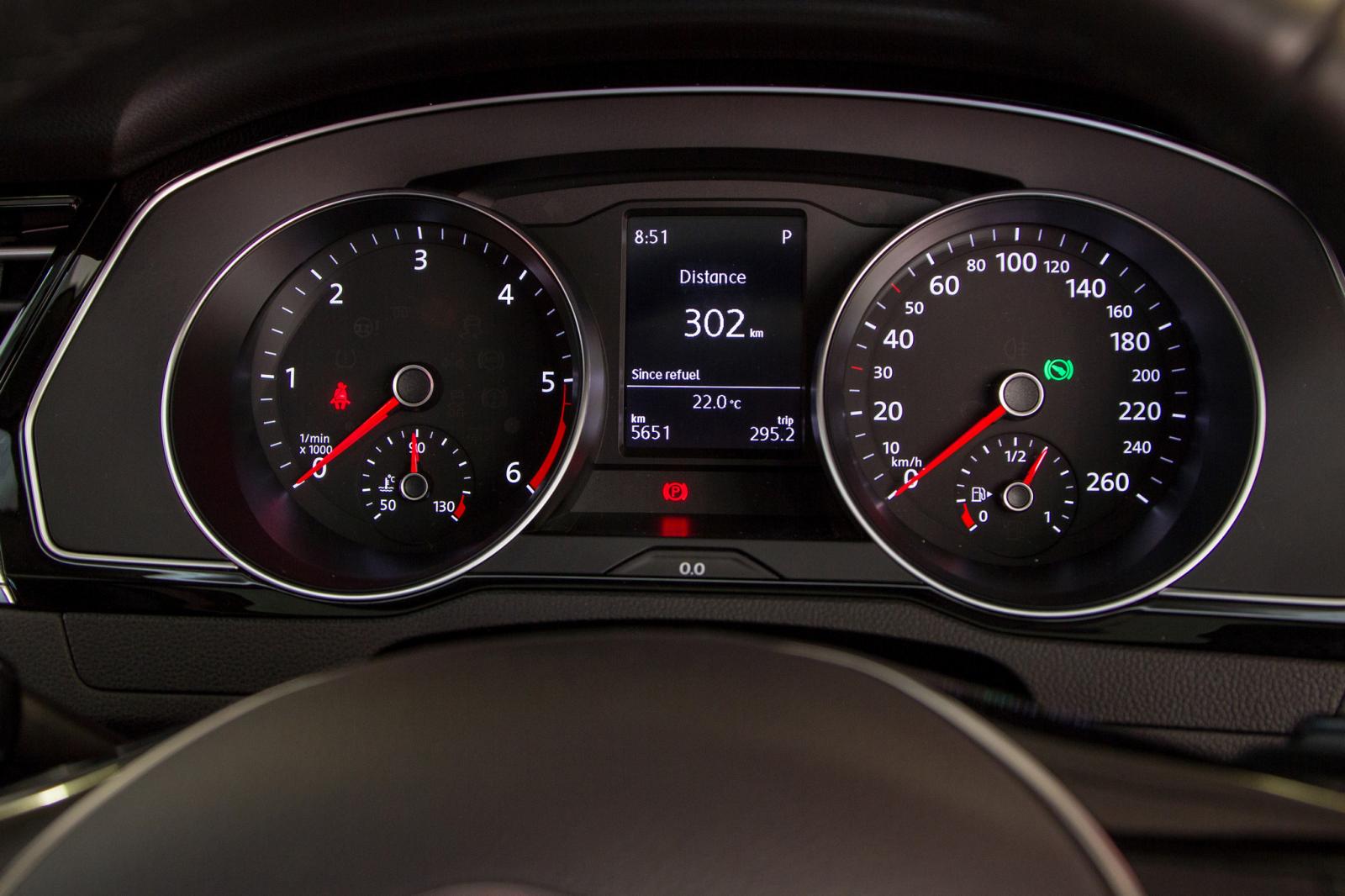 Without fancy gizmos to spruce up the cabin (as fitted to the 2.0 TSI R-Line we tested before), the Passat looks rather bland on the inside. For example, the glitzy Active Info Display (digital instrument cluster) that was fitted to the petrol Passat is replaced by a standard set of analogue dials, which do the job but look dull. The large touchscreen infotainment system is also replaced with a smaller, more rudimentary version. The latter does have the option of App Connect available, so it will do just about any connectivity job you need taking care of.