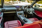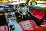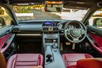 The oohing and aahing continued inside, where the flagship IS has a lot to look at, starting with striking red leather upholstery in the case of our test unit. Slide in and you're faced with a facia unlike anything else in this segment. Partly futuristic, somewhat cluttered, but probably better screwed and glued together than any of its direct competitors, it takes a while to become familiar with the controls in the IS. It continues with Lexus' mouse-like haptic control-input system, which simply is not as user-friendly as BMW's iDrive or Audi's MMI. The chrome strips that double as temperature control "sliders", however, are very nifty items and we do appreciate the size (10.3-inch) and resolution of the infotainment screen. This F-Sport derivative also features a very smart digital instrument cluster with the sliding centre "gauge", which always garners plenty of attention.