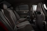 The seats are, a little curiously, trimmed in a combination of leather and cloth, which is sporty and befits the sedan’s character, but most buyers would probably prefer full leather, because, well, that’s what they’re used to getting in business class sedans.