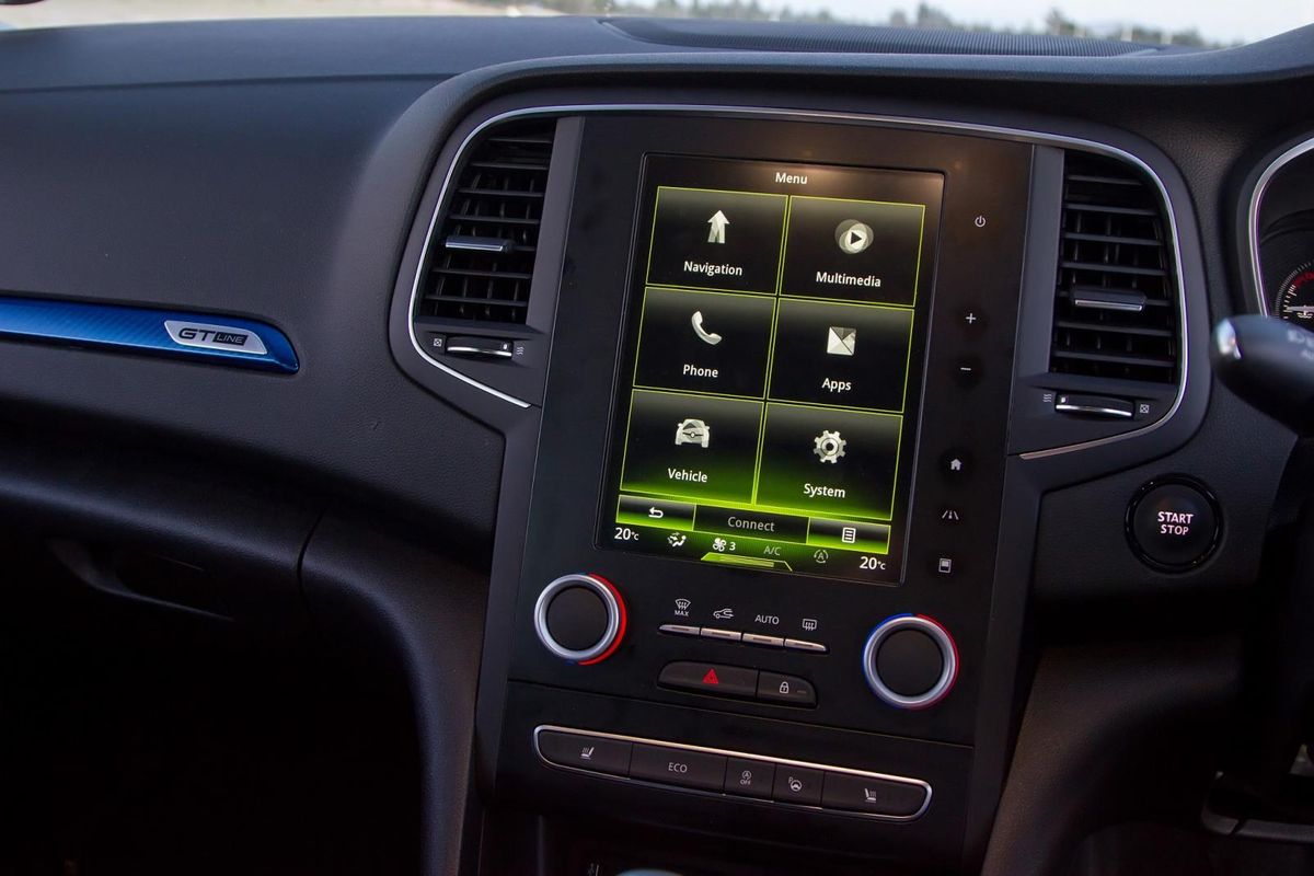 Features. Renault is generous with standard features. Even in this model, you get heated bucket seats clad in Alcantara and an 8.7-inch touchscreen infotainment system. Navigation is standard, as is the digital instrument cluster that can be customised with different themes. If you want to dip into the options bin you can also get hands-free parking and LED headlights.