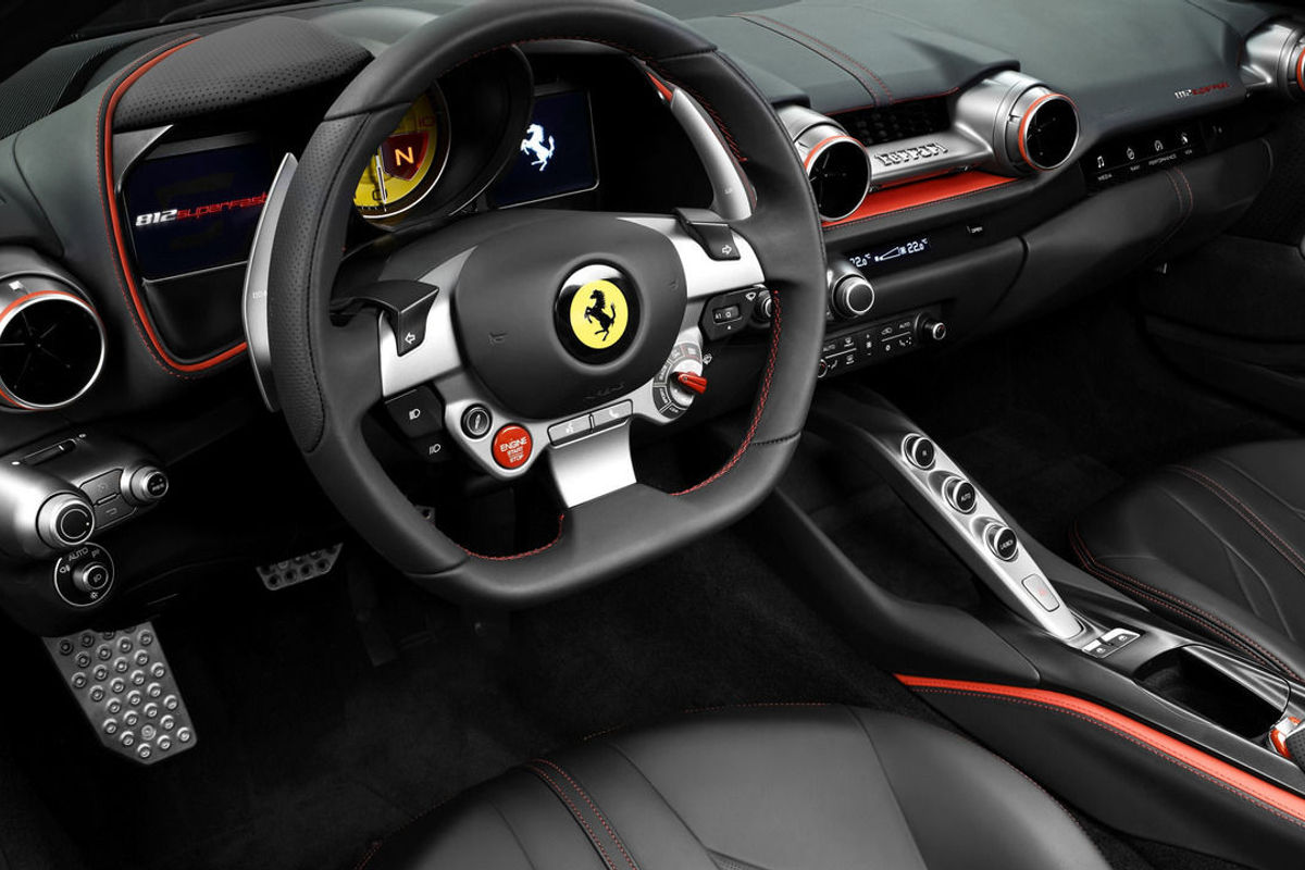 The 812 Superfast is essentially a revised F12 Berlinetta, but with more power and torque. Power comes courtesy of a larger 6.5-litre V12 engine that produces 588 kW at 8 500 rpm and 718 Nm of torque, all of which is available from 7 000 rpm.