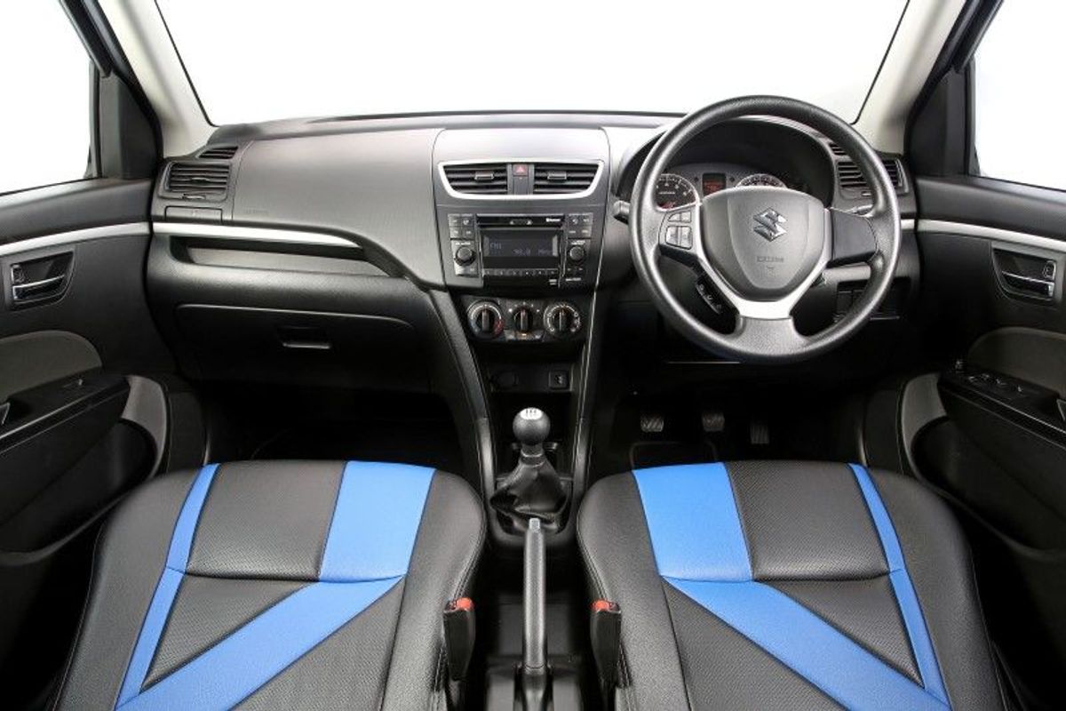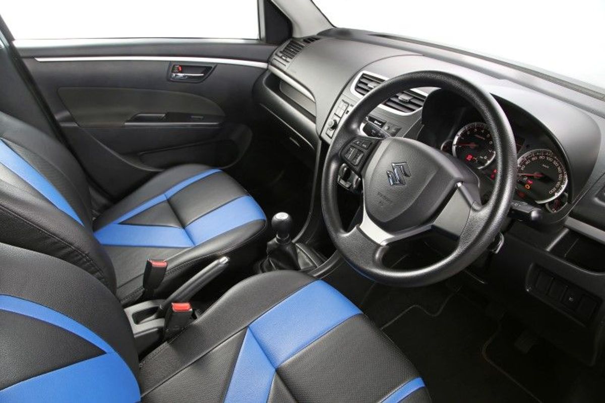The Swift 1.2 RS will only be available in Artic White Pearl Metallic and comes fitted with side skirts and front and rear spoilers. The special edition rides on custom dark machined rims shod with Goodyear Dura rubber and a tailgate spoiler further adds to the special edition’s sporty flair. Dark blue decals and RS lettering is found on front spoiler and on the painted side mirror covers.
