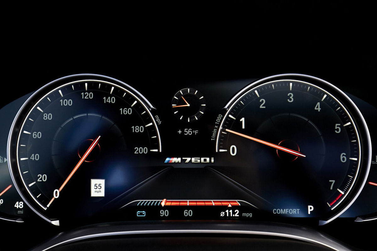 BMW’s iDrive system is navigated using a touchscreen display, as found in all 7 Series vehicles, and the system incorporates gesture control. The M760Li is also equipped with a new smartphone holder that’s integrated into the centre console and allows for wireless inductive charging.