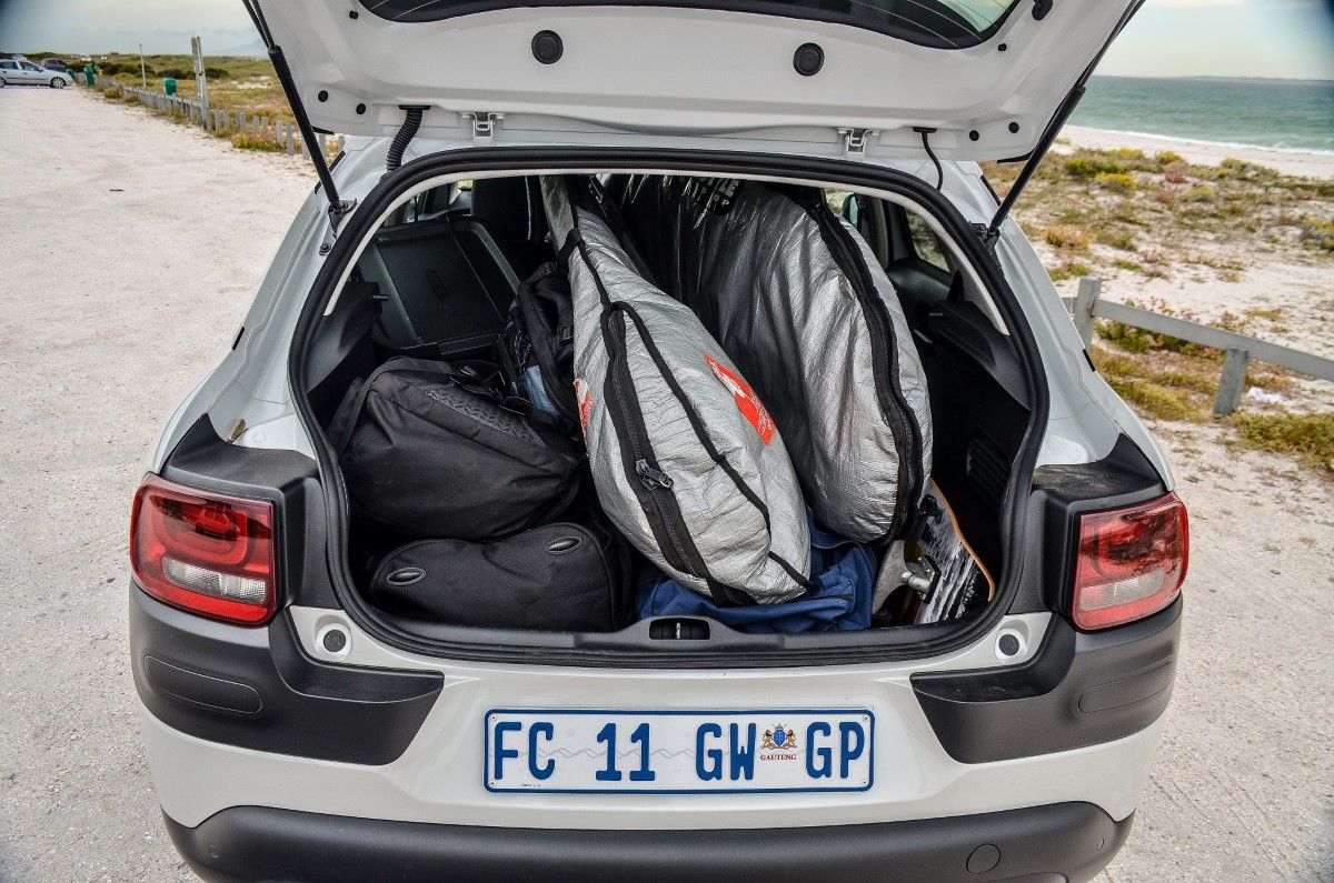 The shape of the loading aperture is a little… unconventional, but bulky surfing gear was accommodated with ease.
