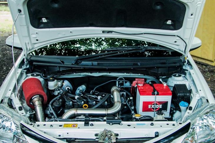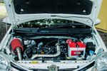 Let’s get technical. The standard 1.5-litre naturally-aspirated 4-cylinder engine from an Etios XS hatch is capable, but never going to provide the entertainment which this market desperately needs. With outputs of 66 kW and 132 Nm, performance is geared towards basic commuting. In terms of performance modifications, turbocharging offered the best bang-for-buck solution and in went a low-boosting turbo, intercooler and free-flowing exhaust and intake. Power is now up to 110 kW and 210 Nm from 0.4 bar boost. Pretorius says that the boost was deliberately kept on the low side for longevity.
