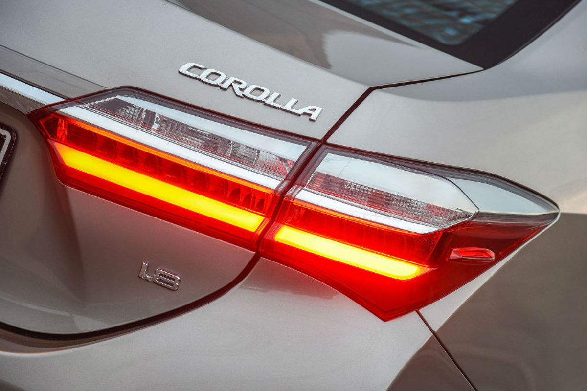LED tail lamp clusters (on 1.8-litre derivatives) and a discreet chrome strip distinguish the facelifted Corolla from its predecessor.