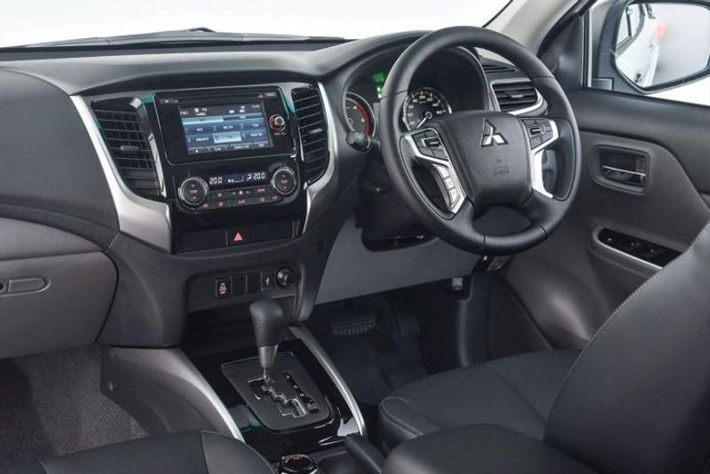 The interior of the Mitsubishi Triton is simple and well-built. Infotainment system offers the basics.