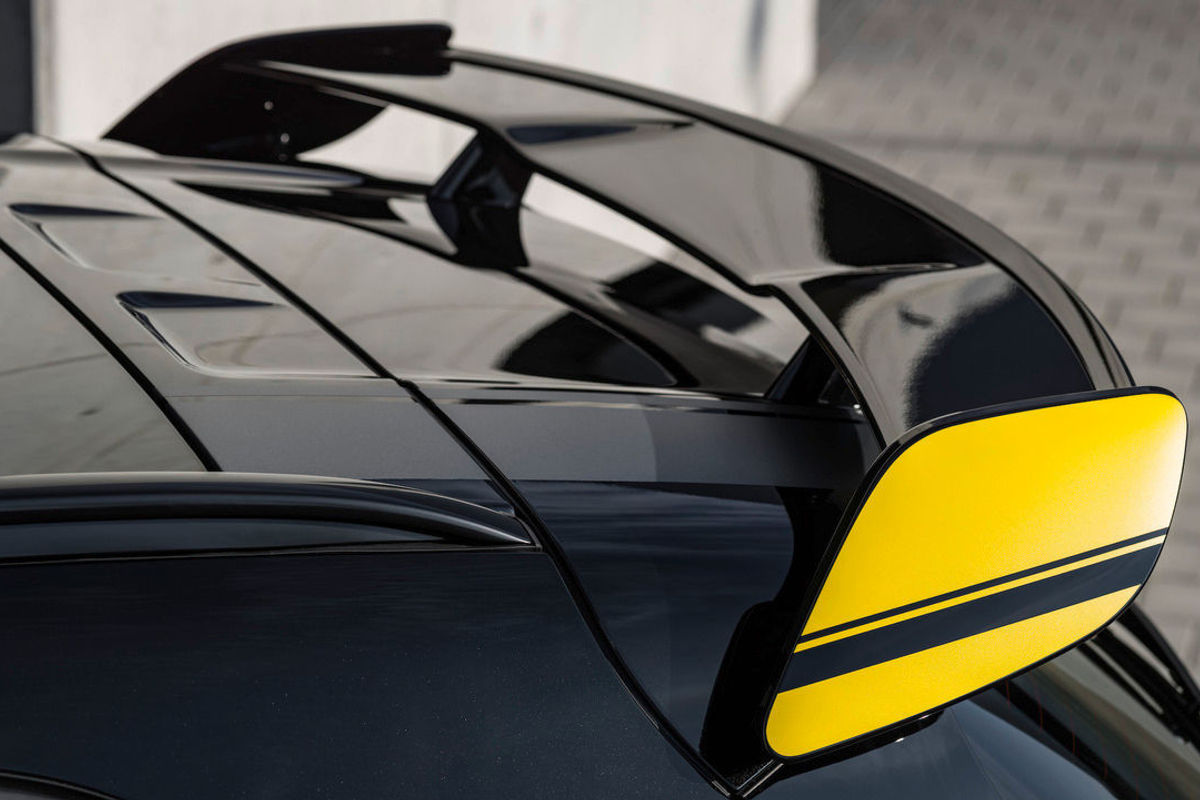 Exterior design features include a newly designed front bumper with a carbon fibre splitter while the new rear bumper is fitted with a carbon fibre diffuser. Carbon fibre side sill extensions and bonnet vents add to the overall look. The exhaust tailpipe features a rifled gloss black design and dark-tint headlight and taillights, as well as black-finished detailing found on the front grille, lights rear bumper, door handles and window surrounds complete the exterior styling package.