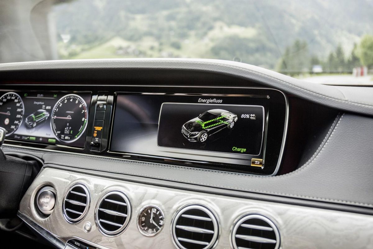 The first-class Sindelfingen hybrid has two modes of charging… from a wall socket via a cable and plug, as well as through braking energy regeneration, where applying the brakes recuperates some of the battery power. The system within the S500e will also top up the battery when free-wheeling or coasting. The total weight of the lithium-ion battery is 114 kg and takes up 96 litres of space. Mercedes-Benz says it is working on a wireless charging solution as well.