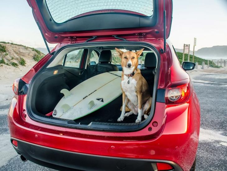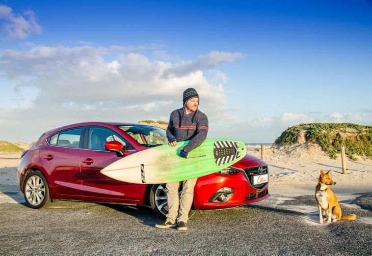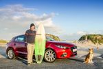 The Mazda3 Astina's boot swallows surfboards and dogs, perfect for a trip to the beach.