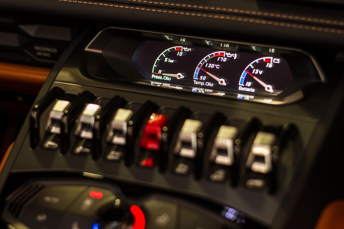 Lamborghini interior design is… showy. The Huracan plays homage to fighter jets in its cabin with the abundance of toggle switches and latches that need to be lifted. The start button hides behind a red latch that needs to be lifted before the start button can be thumbed into action. It’s like a protection cover before being given the go-ahead to fire a missile volley. It’s not entirely comfortable if you’re a slightly taller driver as it doesn’t feel like the seat reclines enough to a comfortable position and those who like a more laid-back position are going to struggle to get comfortable. The interior does feature Audi-like switchgear however: the centre console buttons, the font and the icons are all borrowed from Ingolstadt. At least the instrument cluster has a slightly different take on the Audi Virtual Cockpit, if only marginally. Everything is designed with a trapezoid in mind and the shape is littered throughout. Unfortunately, the cabin lacks quality feel and touch that you’d expect for the money you’re spending. The Audi R8's interior feels more solid and that’s nearly half the price of this Lambo.