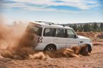 Other notable features include power windows and electrically adjustable exterior mirrors, 12V charging points, remote central locking, and a remote fuel filler flap. In terms of safety features, the Scorpio has dual front airbags while the brakes are ABS-equipped and feature electronic brake-force distribution (EBD). A collapsible steering column, crash protection crumple zones, side impact protection bars, an immobiliser and anti-theft alarm system are standard.