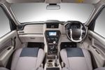 There's a new-look front end with purposeful detailing: the new headlights incorporate LED daytime running lights, a bonnet scoop feeds cool air to the intercooler and foglights are recessed into the bumper. Tough touches include wheel arches, roof rails and side cladding and to maximise the Scorpio's go-anywhere ability Mahindra has fitted all-terrain tyres. The rear of the vehicle features LED tail lamps and a roof spoiler with an LED brake light.