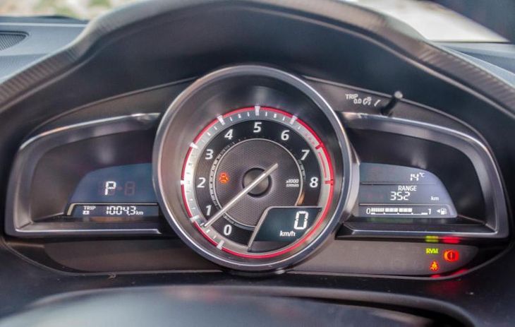 The instrument cluster of the Mazda3 Astina is stylish and sporty in design.