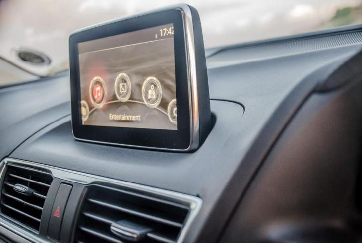 The 7-inch touchscreen adds a nice upmarket touch to the Mazda3 Astina's interior.