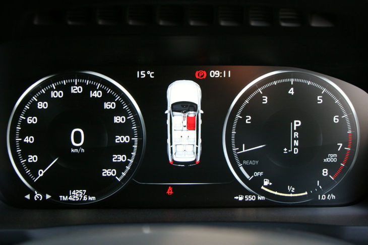 Numerous on-board safety systems are available, including pedestrian and cyclist detection. Note digital instrumentation display.