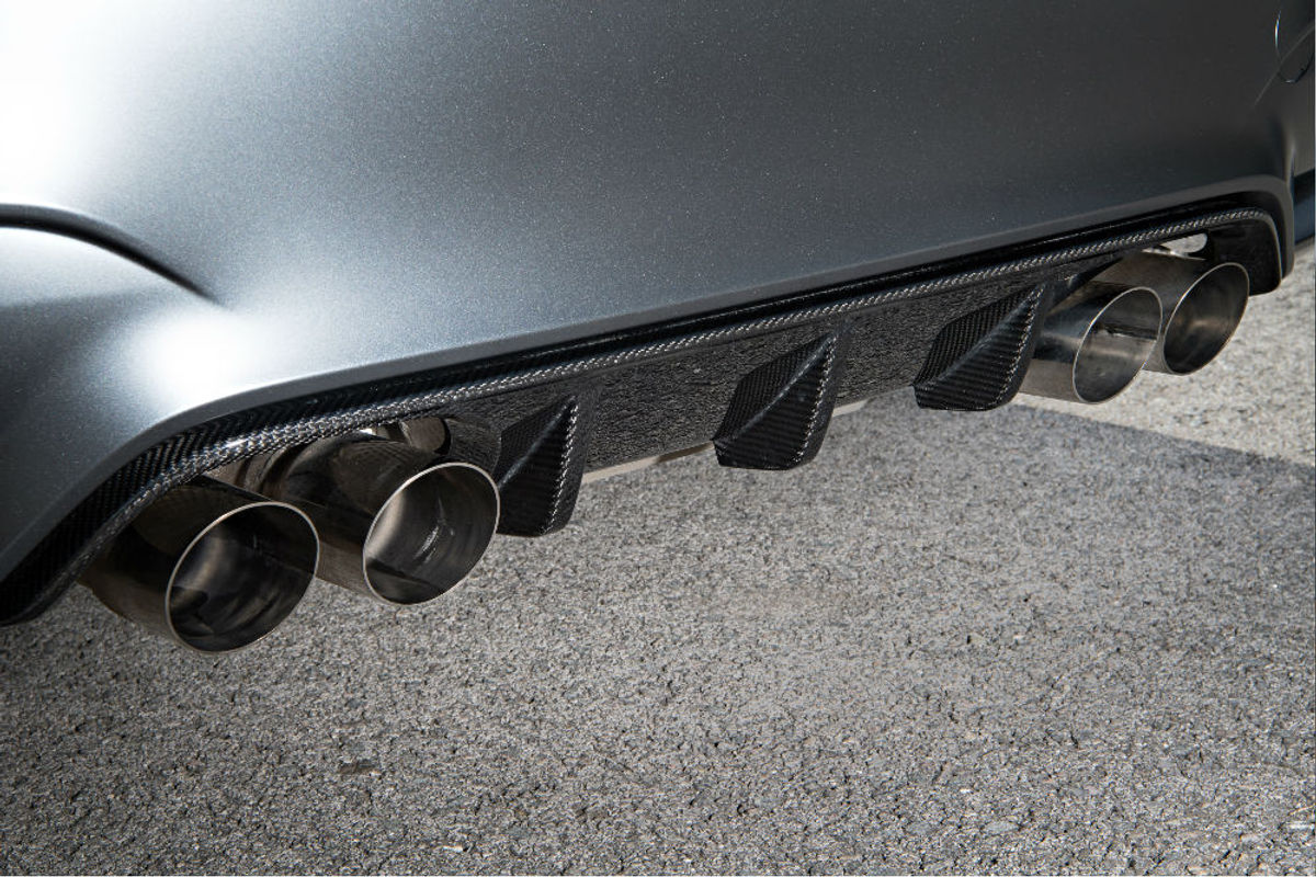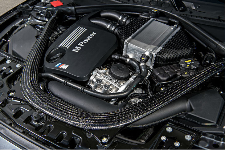 The highly tuned 3.0-litre biturbopetrol engine is cradled by a carbon-fibre brace and features water-injection technology.