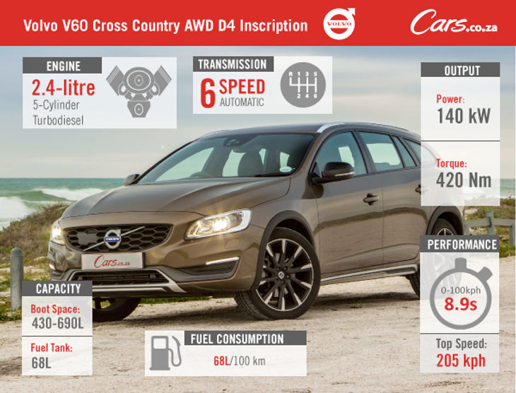 The Volvo V60 Cross Country D4 Inscription sells for R545 006 and comes backed with a 5-years/100 000 km warranty and maintenance plan. Service intervals are set for every 20 000 km or 12 months – keep an eye out for the on-board service notification.