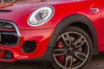 If it's unique JCW cosmetic addenda that you’re after, then the Chilli Red roof and mirror covers are available, as are JCW stripes on the bonnet. The interior is fitted with JCW sports seats and a derivative-specific multifunction 3-spoke leather steering wheel. There are loads of options available for connectivity, navigation etc and funky ways to further spruce up your Mini (so that there is little danger that it will look quite like someone else’s).