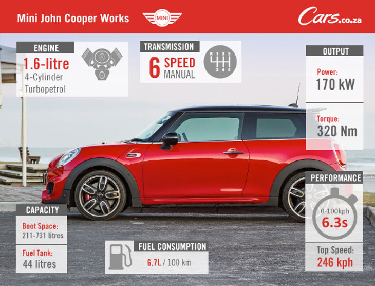 Success! The Mini John Cooper Works ups the ante on the standard Cooper S without turning the Mini into an unmanageable Neanderthal. It’s not quite a track-day special car, but it’s certainly a thoroughly entertaining driving machine. The dynamic damper option is a must-have (in our opinion) as it really does smooth out the ride/make the JCW less of a back-breaking proposition on an everyday basis. Unfortunately, the manual gearbox is less engaging than we hoped for due to its springy action and long throw but, it is some R40k cheaper than the auto. The Audi S1 proves to be the JCW’s main competition, but, in fairness, the Ingolstadt hatchback takes itself more seriously than the Mini. The JCW has a funky, fun personality; is it too measured for its own good? Nah.