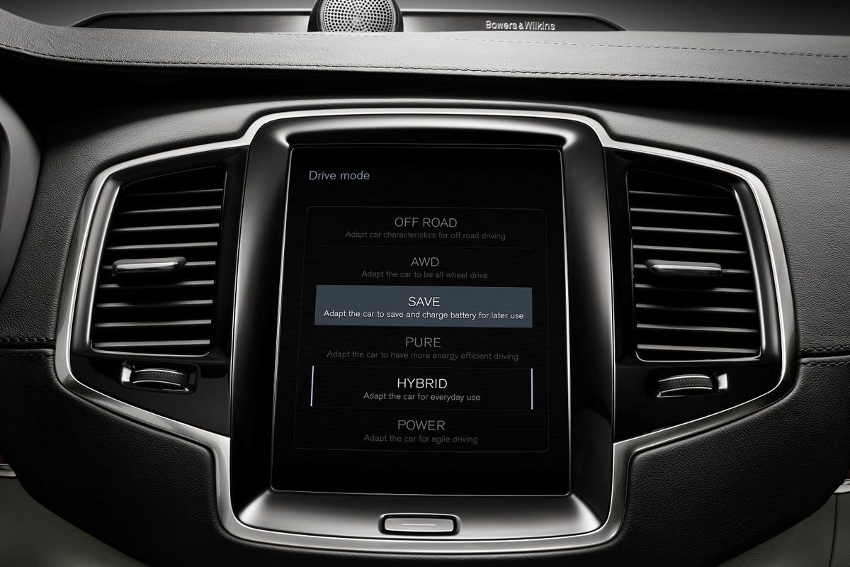 The vehicle captures braking energy anyway, but you can force the T8 to harvest more intensely by putting the vehicle into braking mode, which is done by moving the gear selector from Drive into Brake. If you then take your foot off the accelerator, the vehicle starts decelerating without brake pedal inputs.