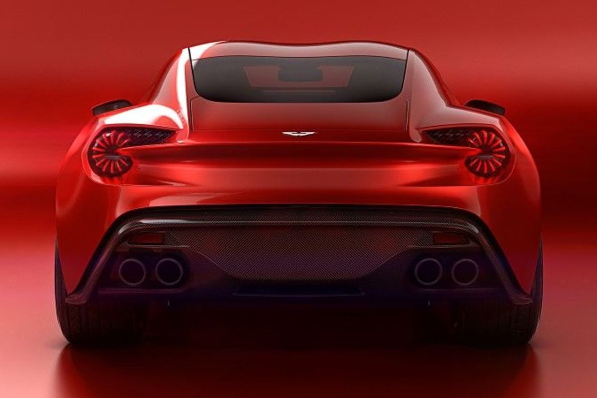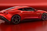 The bodywork of the Aston Martin Vanquish Zagato concept is shaped entirely from carbonfibre and fewer split lines are visible due to the use of large one-piece panels. The round taillight reflectors, which incorporate "bladed" LED technology (also found on the Aston Martin Vulcan), are classic Zagato touches.