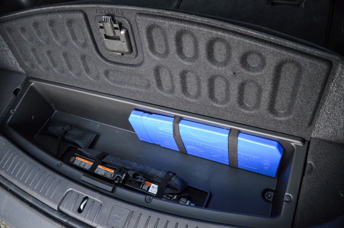 Neat lidded storage compartment in the luggage area.