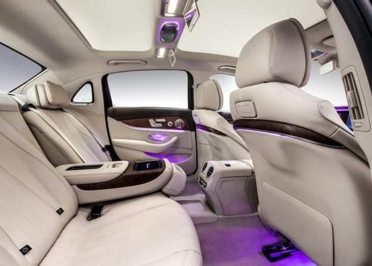 As we mentioned earlier, not everyone can afford the mighty S-Class, so how about a stretched out version of the all-new Mercedes-Benz E-Class? It’s called the E-Class L and is 140 mm longer than the standard sedan. While that doesn’t such like much to write home about, the re-engineered cabin sports a larger rear passenger footwell area and improved legroom of 134 mm. There are also bigger rear doors that make getting in and out easier. The centre armrest boasts an illuminated stowage compartment, USB port, optional touchscreen, wireless charging pad and a heated cup holder.