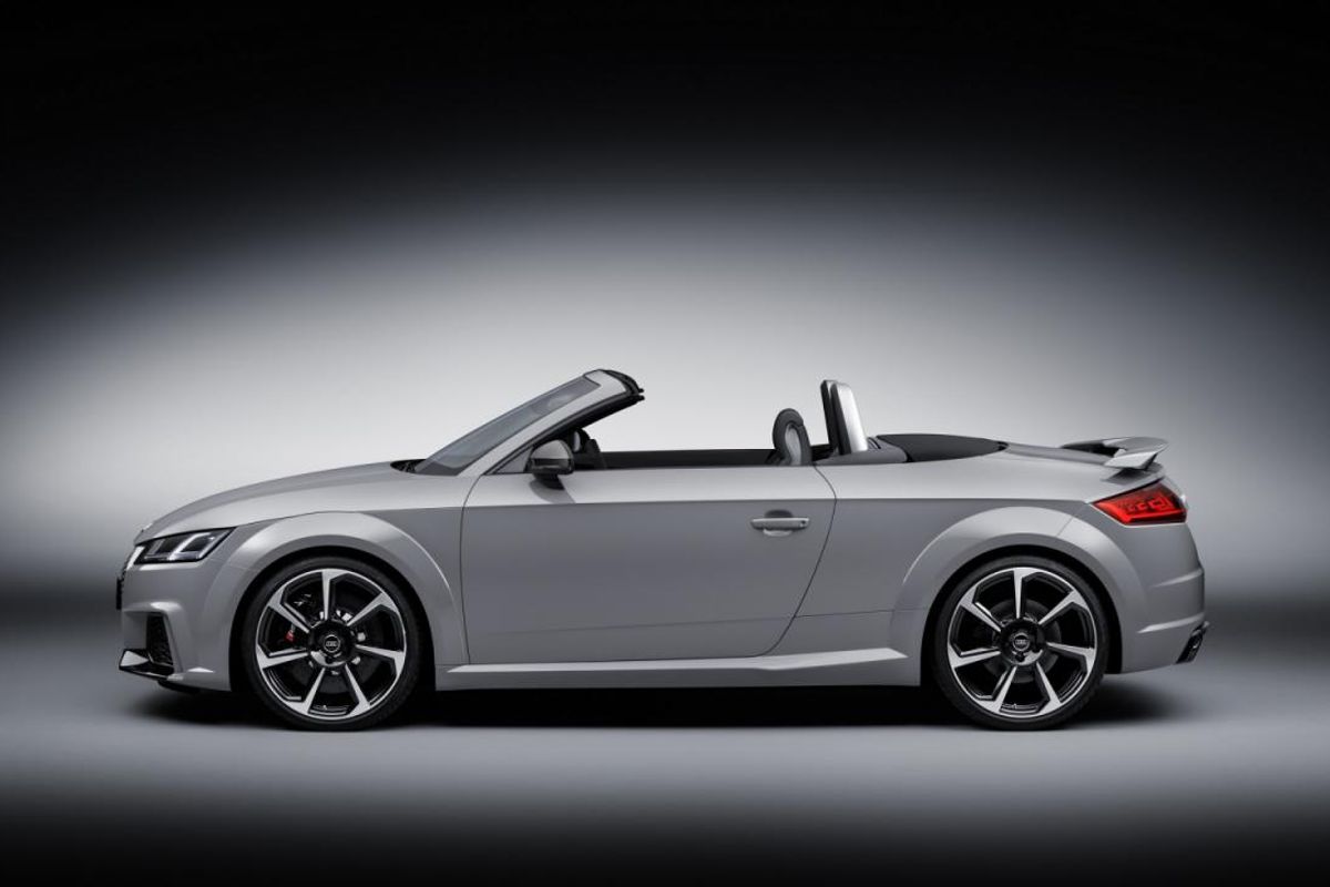 The TT RS sits lower and is lighter than the outgoing model. The TT RS Roadster is fitted with a fabric roof that can open and close in 10 seconds at speeds up to 50 kph. Visually, the TT RS is distinguished with a fixed rear spoiler, whereas other TT models are fitted with a retractable rear spoiler. The front air intakes are also noticeably larger and the TT RS rides on specific 19 or 20-inch wheels. The new model can also be had in special colour variations of Nardo grey or Catalunya Red.