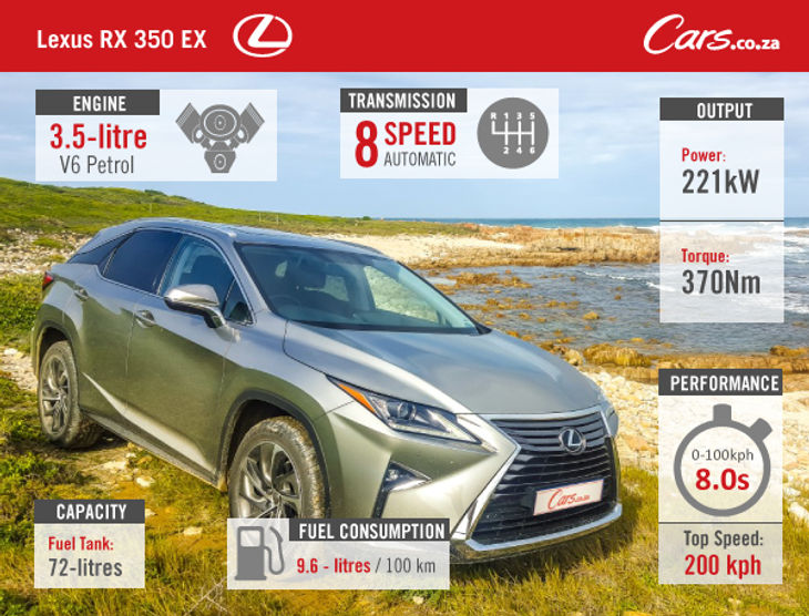 The Lexus RX350 EX sells for R839 000 and comes with a four-years/100 000 km vehicle warranty and maintenance plan. Servicing is required every 15 000 km.