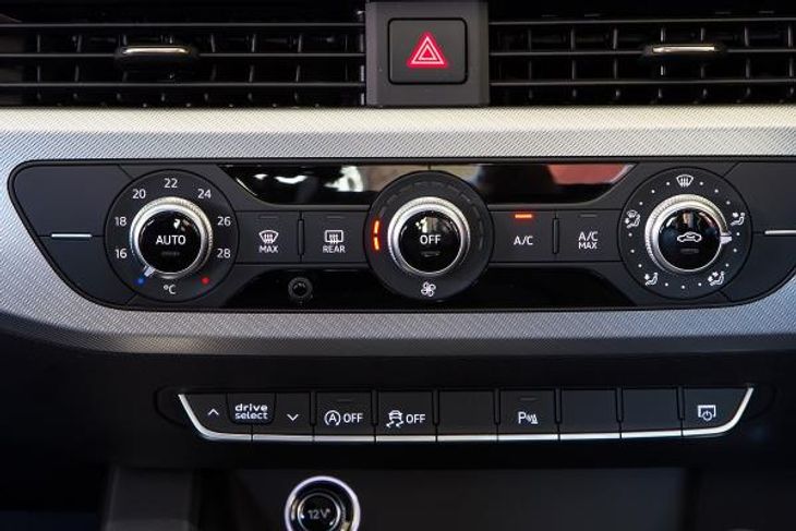 Well crafted buttons and switches in the Audi A4. Note: Audi drive select button to choose engine modes.